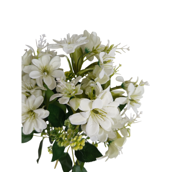 Trojpuk kytice x7 s přízdobou. V. 47 cm, květ 6 cm. Mat. plast a textil. 6 barevných variant.