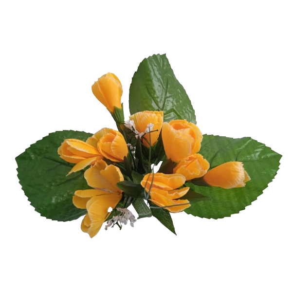 krokus x5 stonků s květy (9 kvítků), gypso, tráva; v. rostliny 25 cm; v. květu 5 cm