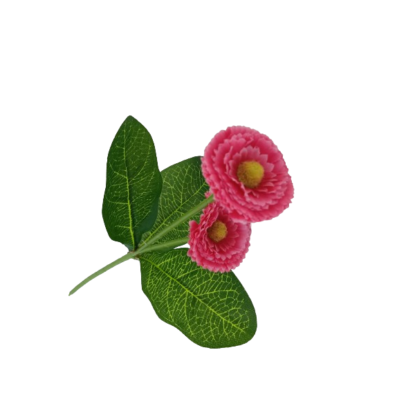 Belis - 2 květy a 3 listy; v. 31 cm, květ průměr 3,5 cm.