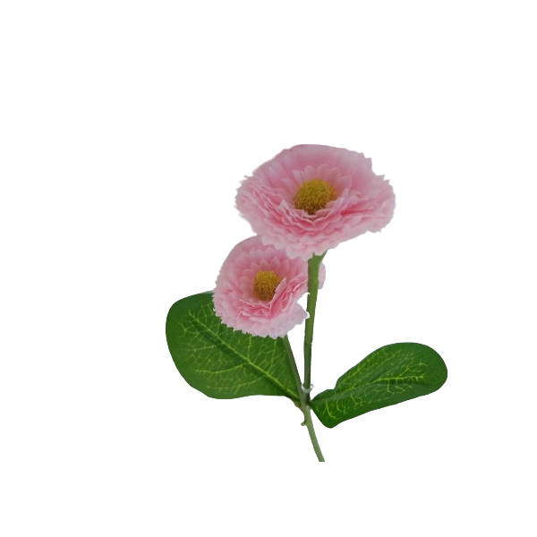 Belis - 2 květy a 3 listy; v. 31 cm, květ průměr 3,5 cm.