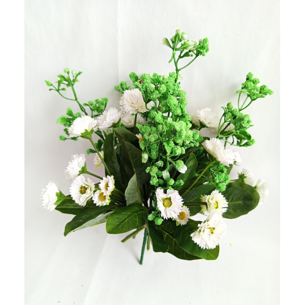kytička bellis bílo-zelená; 5x bílý bellis, 1x gypsophila zelená; výška cca 33 cm; velmi pěkná kytička svázaná dohromady rovnou do vázy