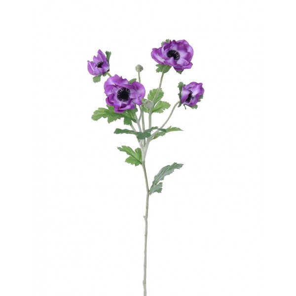 Anemonka x 4 stonky/květy, v. 62 cm, květ 9 cm. Výhodné balení 6 ks. Tento artikl prodáváme i po 1 ks. Art. 100-0156/PU.