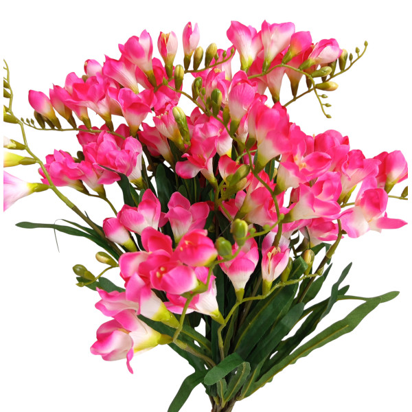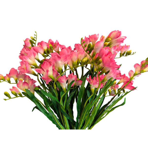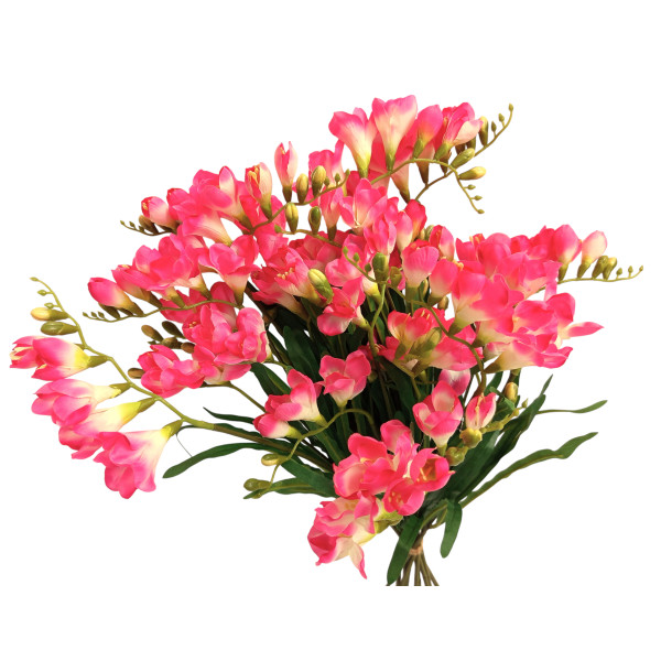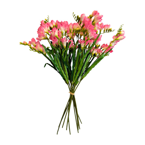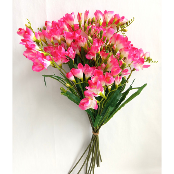 12 ks růžových frézií v jedné kytici. 1 ks frézie má 2 květenství, v. 57 cm. Velmi pěkné.