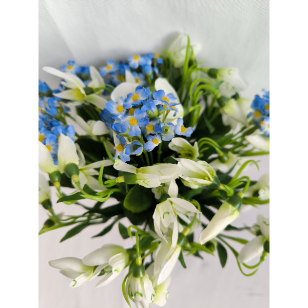 Kytice vázaná sněženky a pomněnky 30 cm