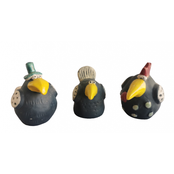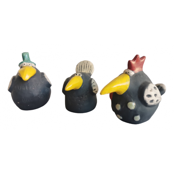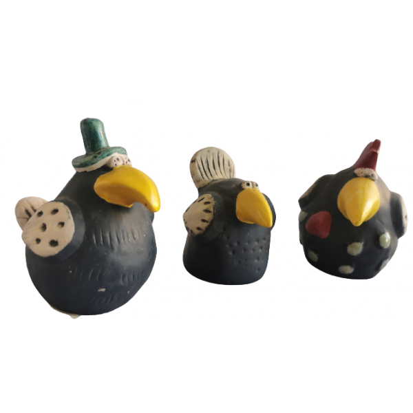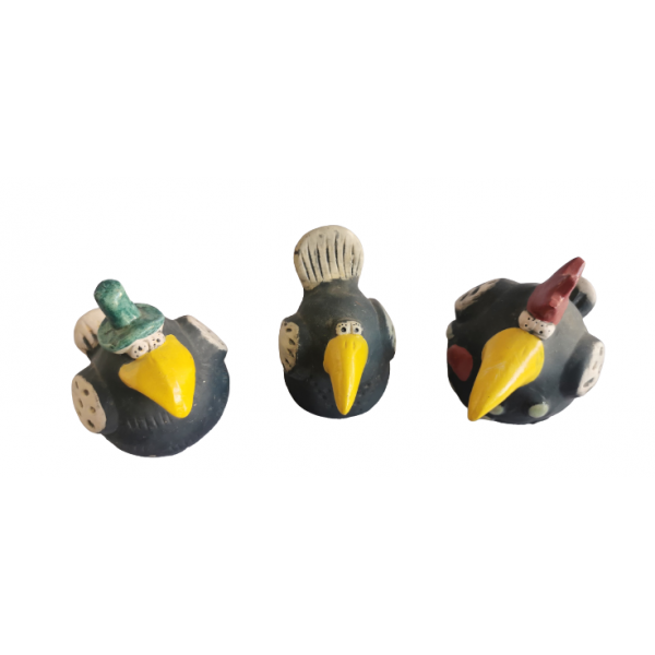 Sada 3 různých stylů bájného ptáka Kera, rozměry cca 10x9,5 cm. Keramika.