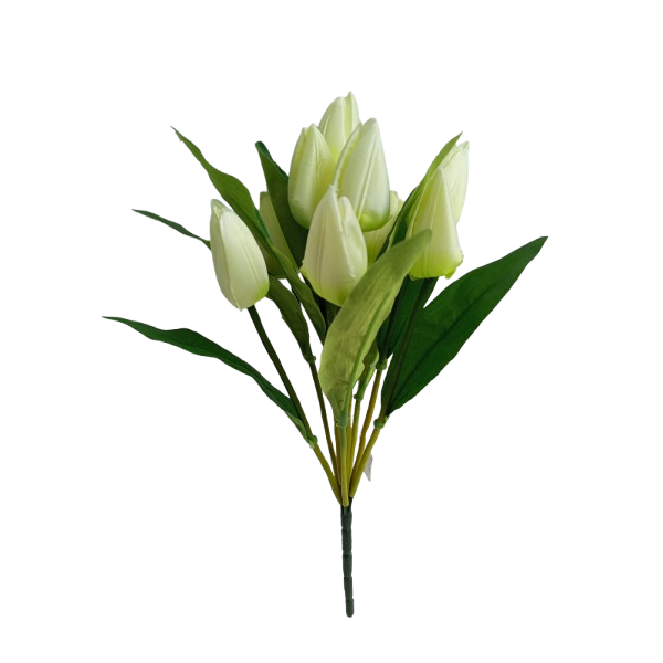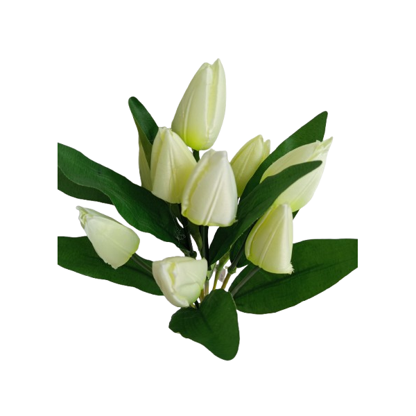 Tulipány svazek, v. 44 cm, 9 květů ve svazku, květ 7x3,5 cm; materiál textil, plast.