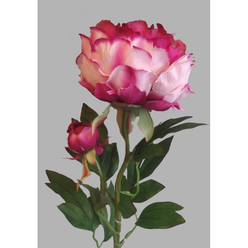 pivoňka x2 (1 x květ, 1x poupě), věrohodná imitace pivoňky s precisně vyvedenými detaily