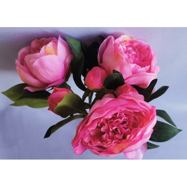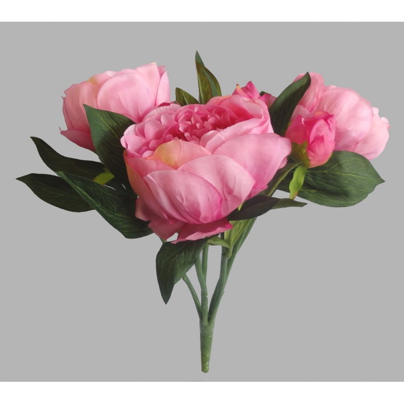 kytice pivoněk x 6(3 květy, 3 poupata); v. 40 cm; moc pěkné a věrohodné