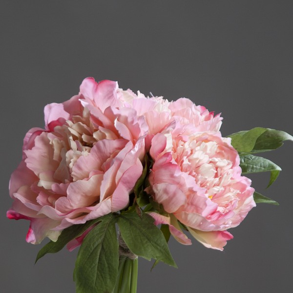 Pivoňka kytička 3 květy + listy, v. 26 cm; věrohodná imitace - moc pěkné.
