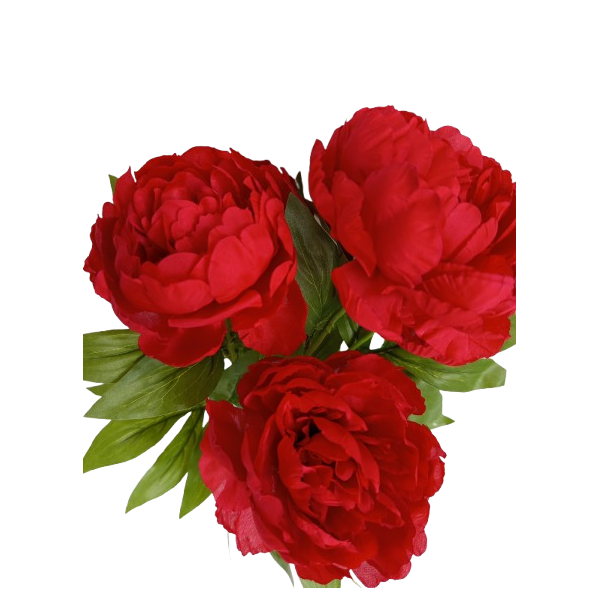 Kytice pivoněk x 5 stonků/ květů; v. 50 cm, květ průměr 11 cm; moc pěkné a věrohodné.