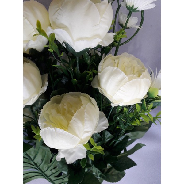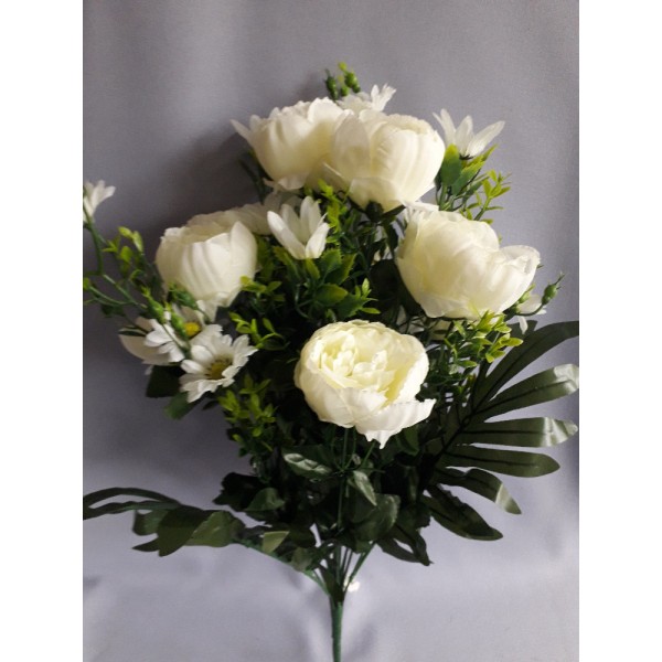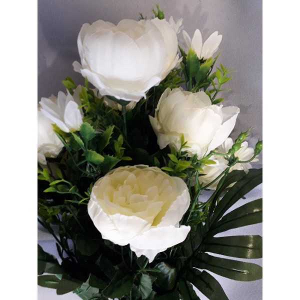 Kytice pivoňka + kopretina s přízdobou a palmovým listem, v. 60 cm; květ pivoně 7,5 cm, POSLEDNÍ KUSY