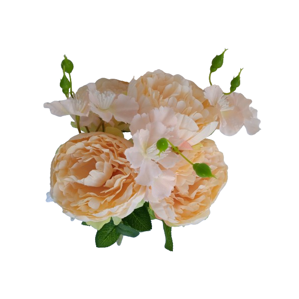Pivoňka kytice x 7 stonků (4 velké květy a přízdoba); v. 46 cm; květ 9 cm.