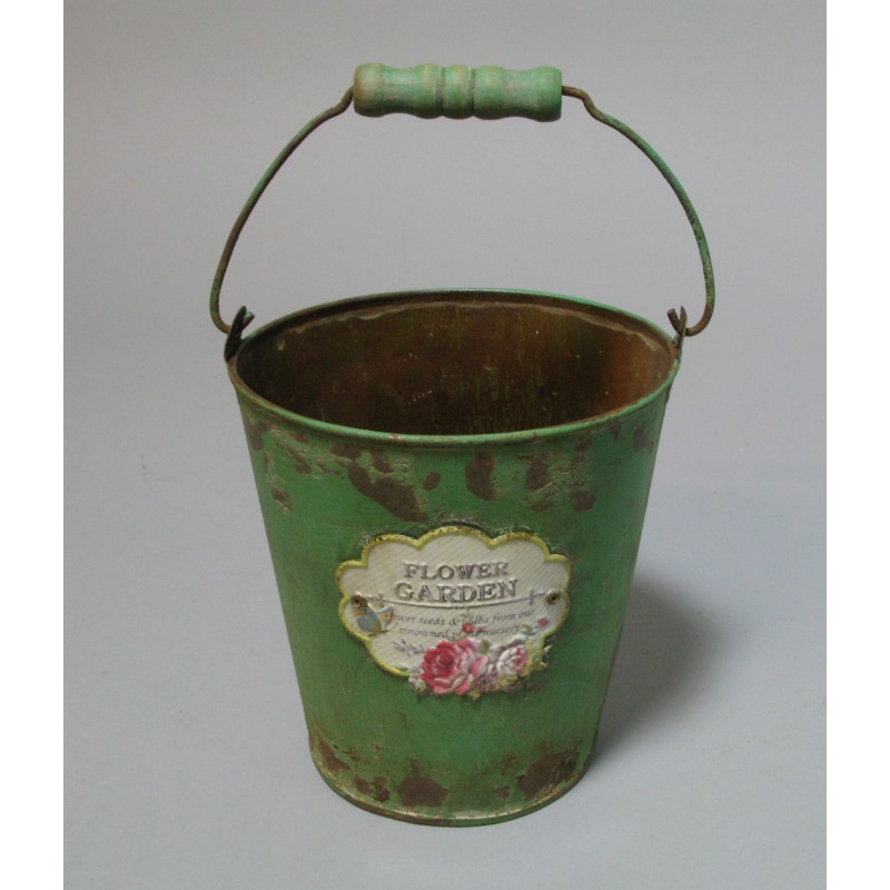 Plechový kbelík s uchem "Flower Garden"retro provedeníplech/dřevo