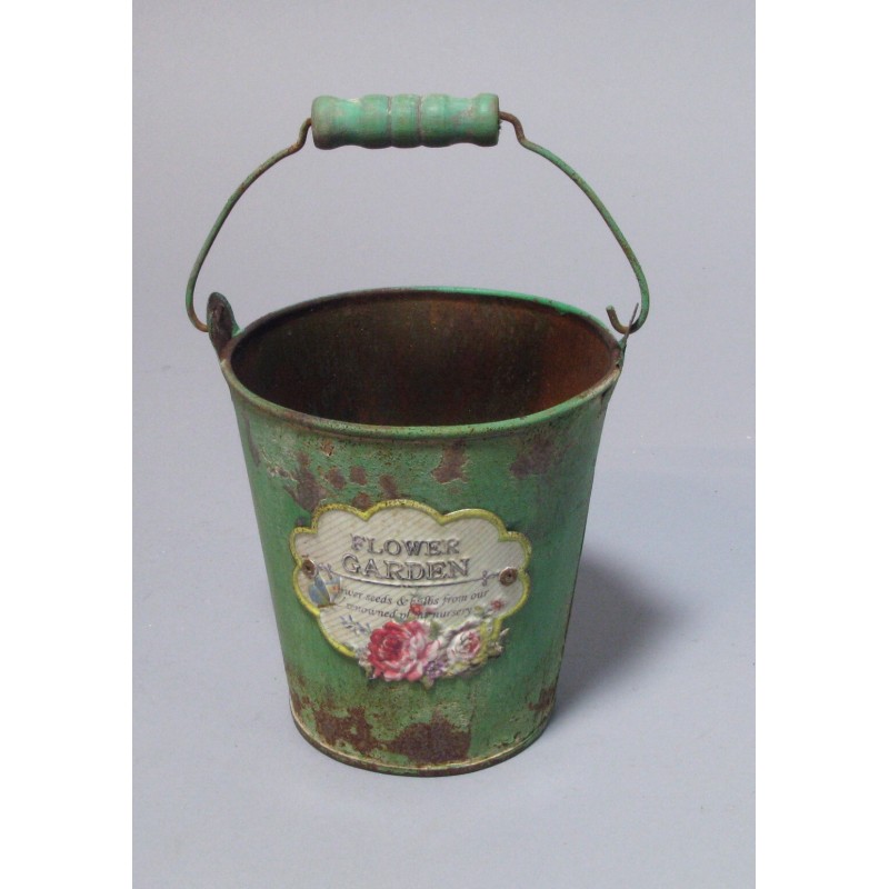 Plechový kbelíček s uchem "Flower Garden"retro provedeníplech/dřevo