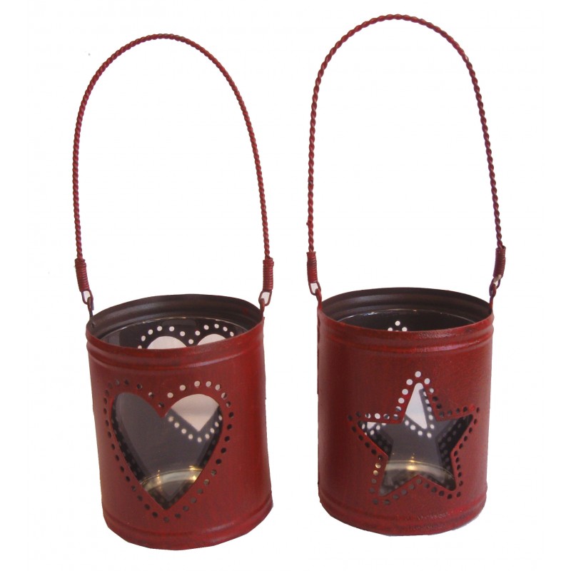 svícen plechový se sklem na čaj.svíčku - 2 styly (srdce + hvězda); za tuto cenu 2 ks