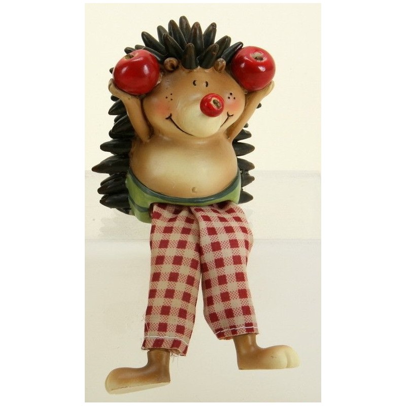 2x veselý ježek s jablíčky; mat. polystone, látkové nohy, v. 8/14 cm;