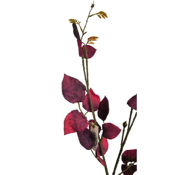 Větev eucalyptus v barvě burgundy, v. 95 cm; list 5x6 cm; mat. plast a textil; moc pěkné