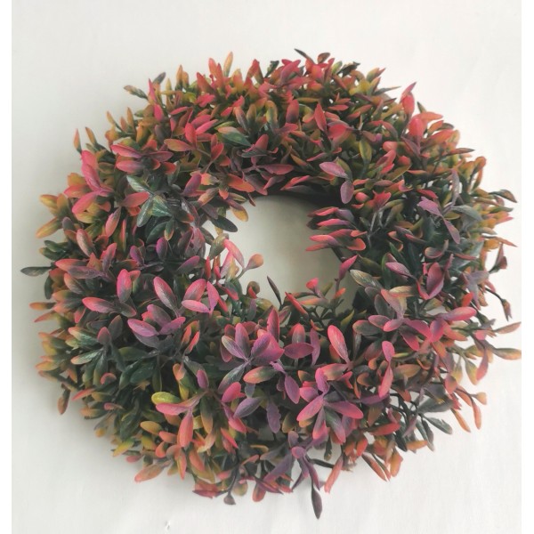 Věnec plastový lístečkový - AZALEA. Průměr 27 cm. Moc pěkný. Barva růžovo-žluto-zeleno-hnědá.