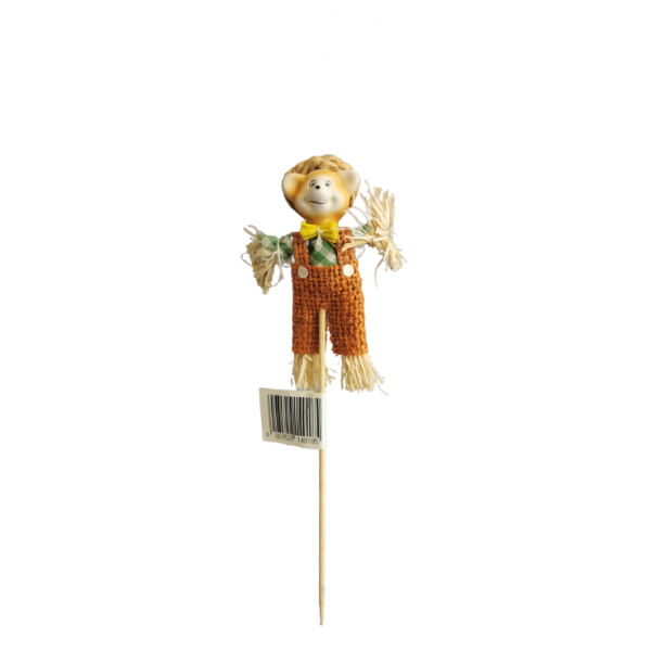 Strašák myšák, vel. postavy 13 cm, s tyčkou 25 cm. Mat. látka, sláma, hlava - polystone.