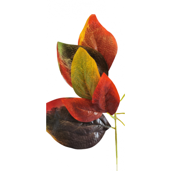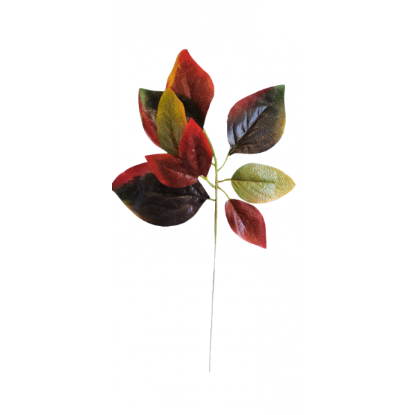 Podzimní větev s barevnými listy, mat.: vyztužený textil; v. 48 cm, největší list 16x10 cm; nejmenší list 6x5 cm
