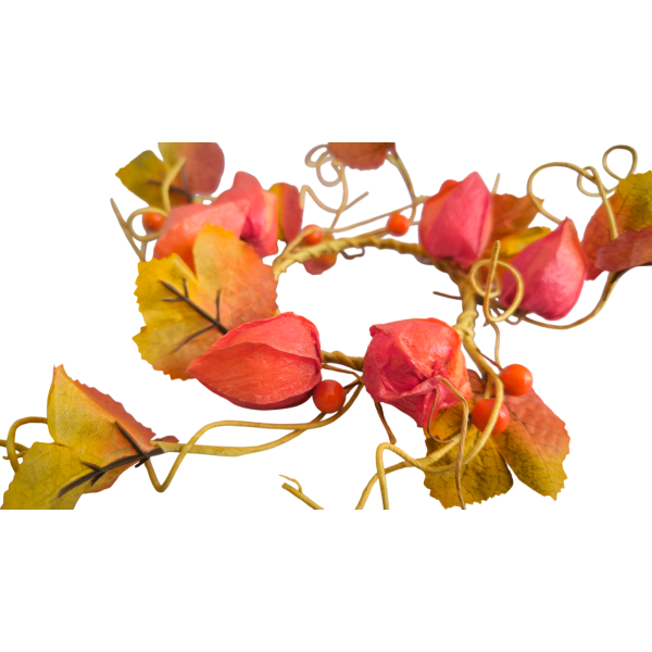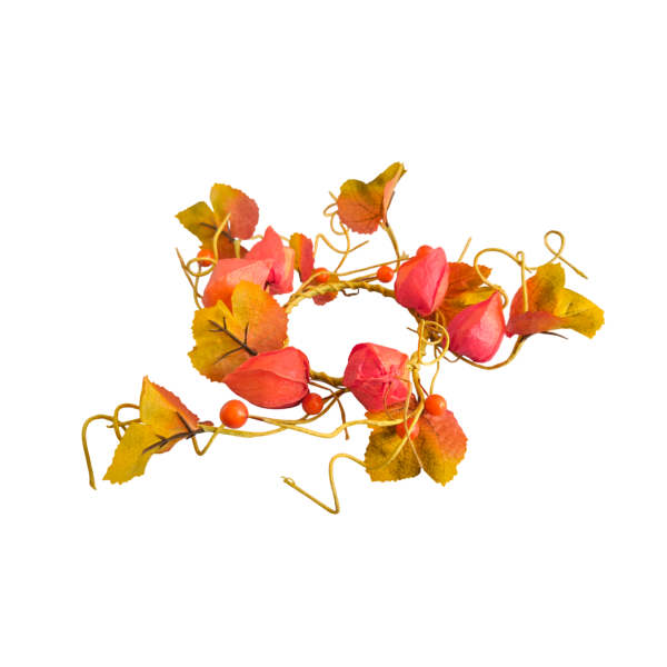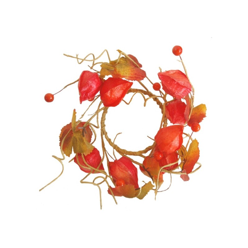 věneček "physalis", průměr 16 cm; mat. textil, drát; moc pěkné provedení - jako živé.
