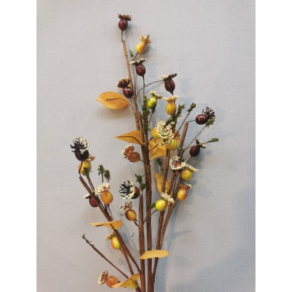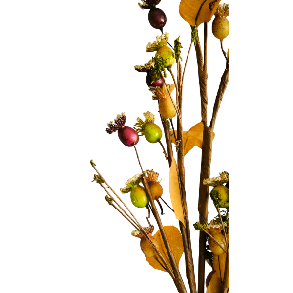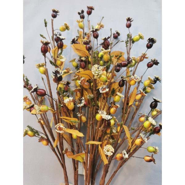 Šípek zasněžený vzhled; v. 89 cm; ideální k dekorování; mat. plodů je tvrzený polystyren; rostlina je tvořená z drátů, takže se dá dobře přizpůsobit ohýbáním