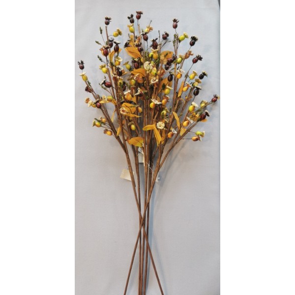 Šípek - zasněžený vzhled; v. 89 cm; ideální k dekorování; mat. plodů je tvrzený polystyren; rostlina je tvořená z drátů, takže se dá dobře přizpůsobit ohýbáním.