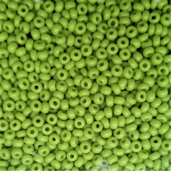 Rokail (rokajl, rocailles) - skleněné korálky. Velikost 9/0 = 2,7 mm. Barva: velmi světlá zelená s lehkým nádechem do žluta. Kvalitní zboží české výroby.