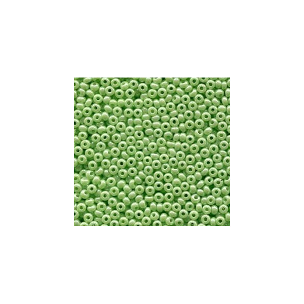 Rokail (rokajl) - skleněné korálky, velikost 9/0 (2,7mm). Barva: zelená s listrem. Kvalitní zboží české výroby.