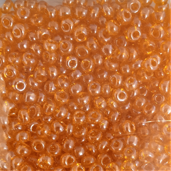 Rokail (rokajl, rocailles) - skleněné korálky. Velikost 6/0 = 4mm. Barva: oranžová s listrem.. Kvalitní zboží české výroby.