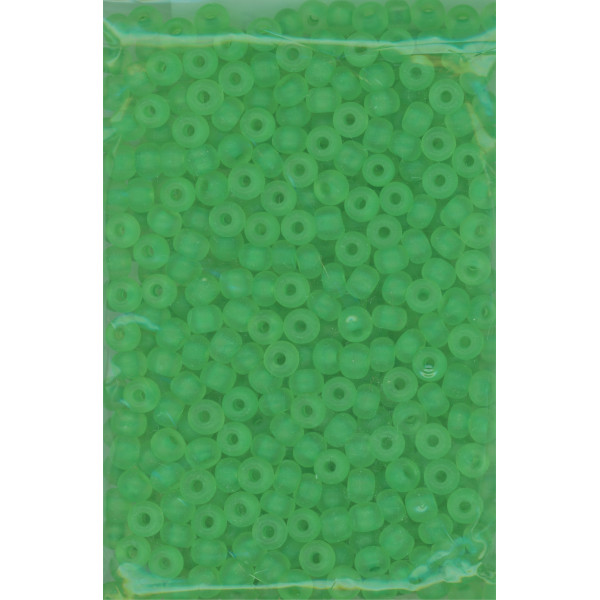 Rokail (rokajl, rocailles) - skleněné korálky. Velikost 5/0 = 4,5 mm. Barva: transparentní, zelená, matná. Kvalitní zboží české výroby.