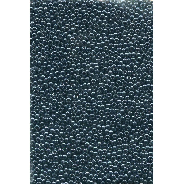 Rokail (rokajl, rocailles) - skleněné korálky. Velikost 9/0 = 2,7 mm. Barva: kovově šedo-modrá s listrem. Kvalitní zboží české výroby.