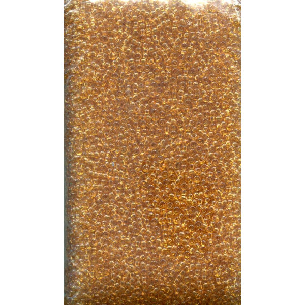 Rokail (rokajl, rocailles) - skleněné korálky. Velikost 9/0 = 2,7 mm. Barva: topaz (medová) transparentní. Kvalitní zboží české výroby.
