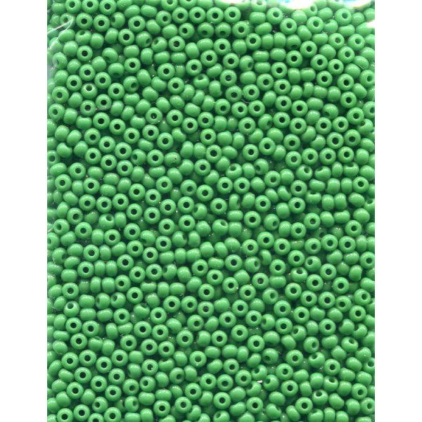 Rokail (rokajl, rocailles) - skleněné korálky. Velikost 9/0 = 2,7 mm. Barva: zelená sytá. Kvalitní zboží české výroby.