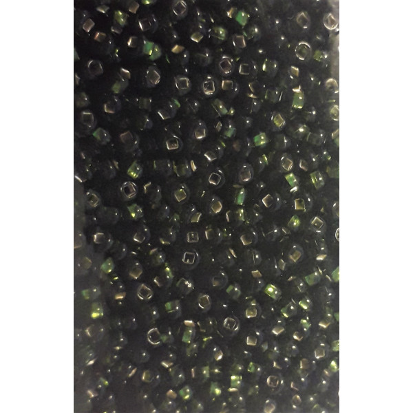 Rokail (rokajl, rocailles) - skleněné korálky. Vel. 9/0 = 2,7mm. Barva: tmavě-zelená - stříbrný průtah. Kvalitní zboží české výroby.