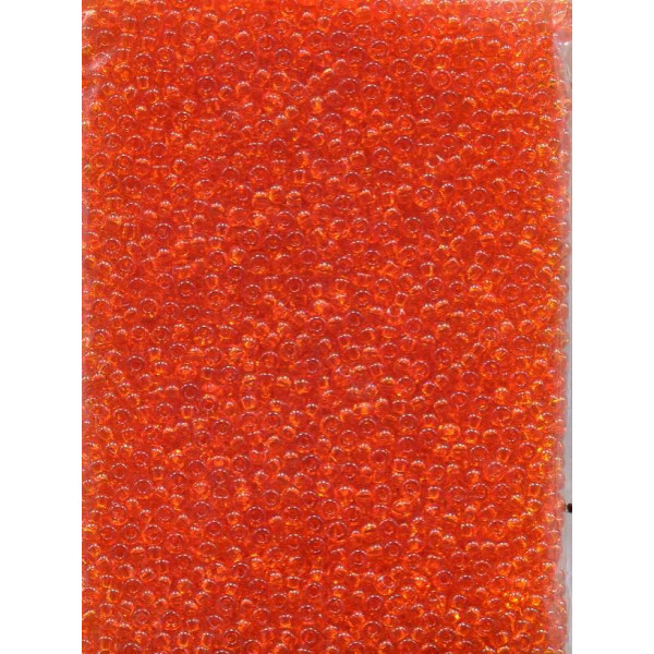 Rokail (rokajl, rocailles) - skleněné korálky. Velikost 9/0 = 2,7 mm. Barva: oranžová - transparentní. Kvalitní zboží české výroby.