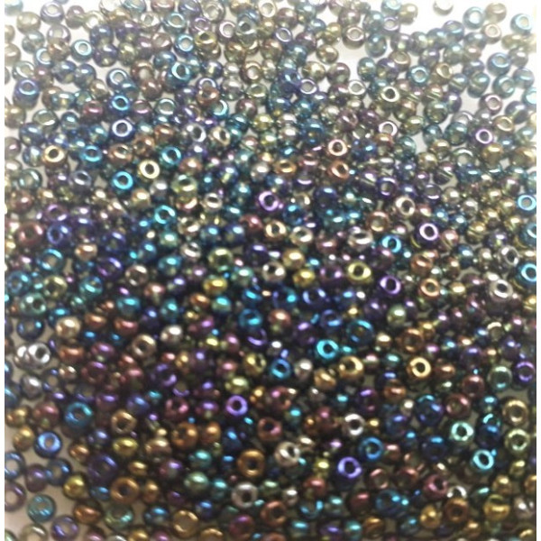 Rokail (rokajl, rocailles) - skleněné korálky. Velikost 9/0 = 2,7 mm. Barva: fialová iris. Kvalitní zboží české výroby.