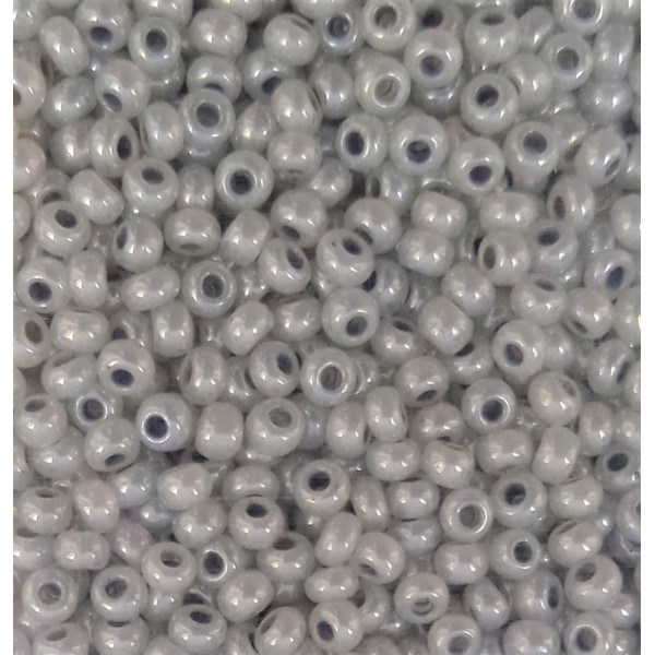 Rokail (rokajl, rocailles) - skleněné korálky. Velikost 9/0 = 2,7 mm. Barva: sv. šedý s listrem. Kvalitní zboží české výroby.