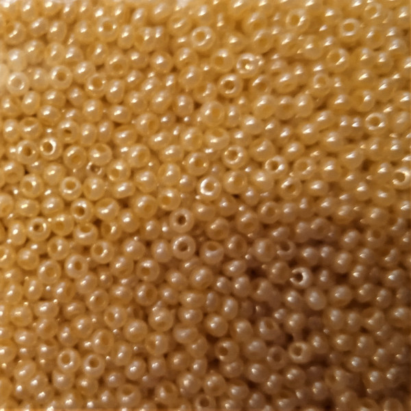 Rokail (rokajl, rocailles) - skleněné korálky. Velikost 9/0 = 2,7 mm. Barva: jasně krémová. Kvalitní zboží české výroby.