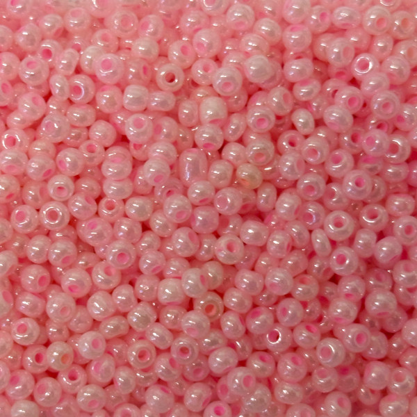 Rokail (rokajl, rocailles) - skleněné korálky. Velikost 8/0 = 2,9 mm. Barva: růžový s leskem. Kvalitní zboží české výroby.
