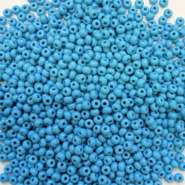 Rokail (rokajl, rocailles) - skleněné korálky. Velikost 6/0 = 4,1 mm. Barva: světle modrý sytý. Kvalitní zboží české výroby.