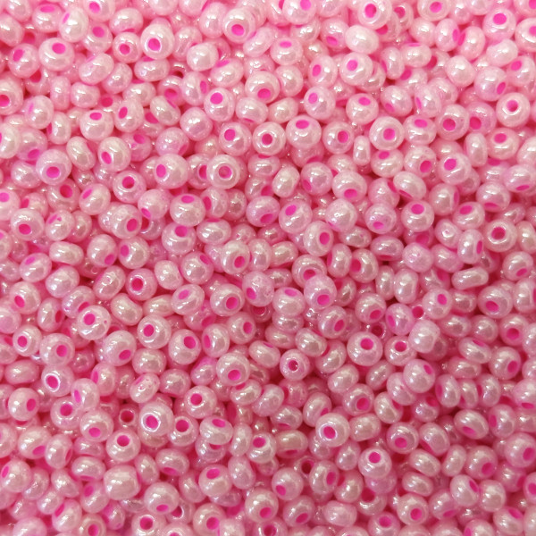 Rokail (rokajl, rocailles) - skleněné korálky. Velikost 9/0 = 2,6 mm. Barva: sv. růžový.