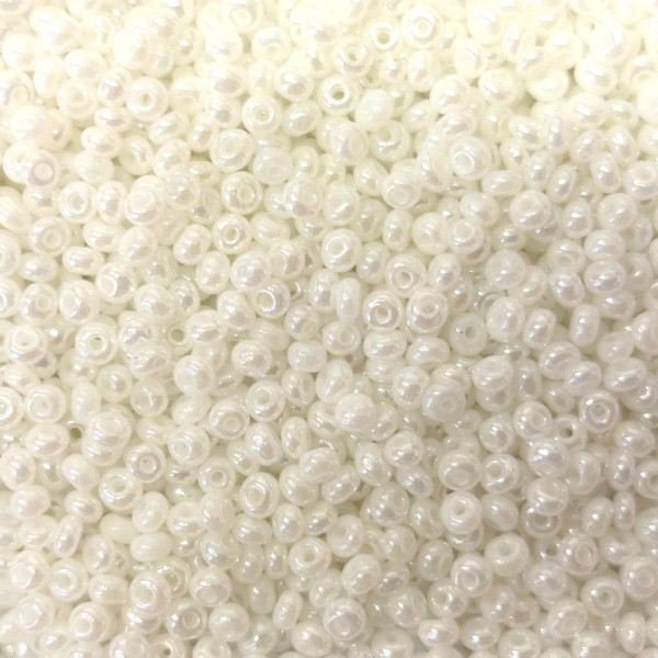 Rokail (rokajl, rocailles) - skleněné korálky. Velikost 9/0 = 2,6 mm. Barva: bílý perleťový. Kvalitní zboží české výroby.