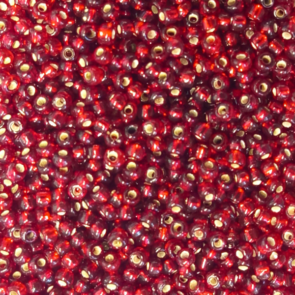 Rokail (rokajl, rocailles) - skleněné korálky. Velikost 9/0 = 2,6 mm. Barva: tmavě červený se stříbrným průtahem. Kvalitní zboží české výroby.y.