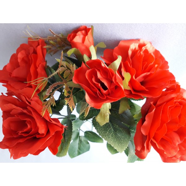 Růže kytice x6, s přízdobou, v. 41 cm, květ průměr 10 cm;