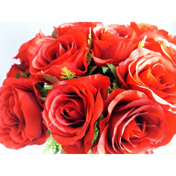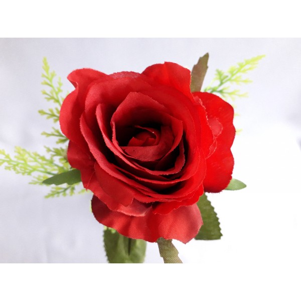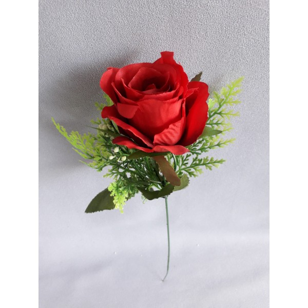 Růže zápich s plastovým asparagusem, v. 30, květ 4x5 cm.