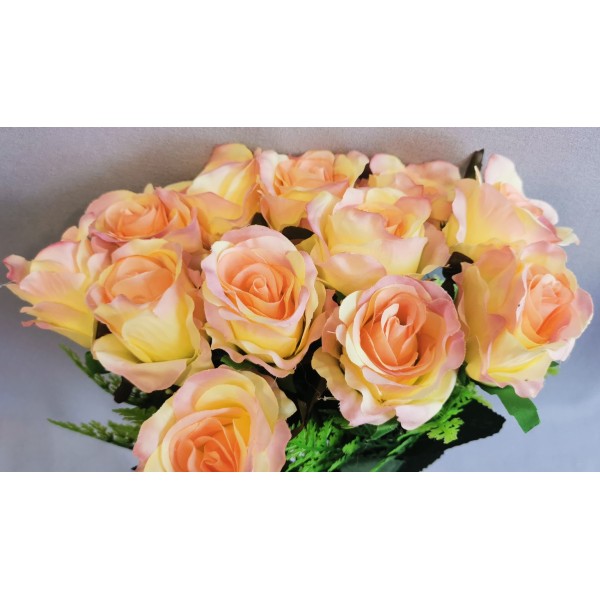 Růže zápich s plastovým asparagusem, v. 30, květ 4x5 cm.