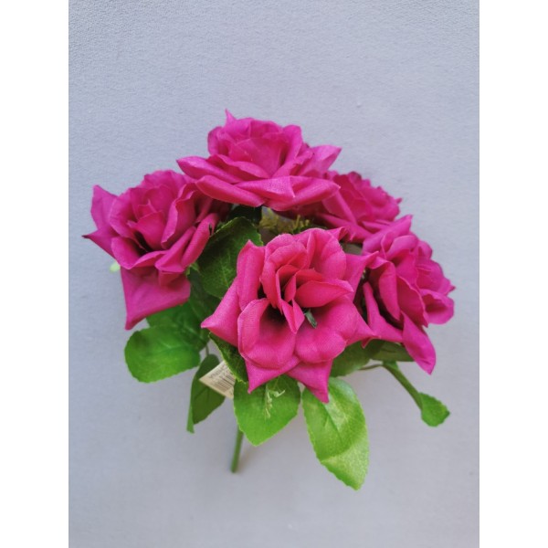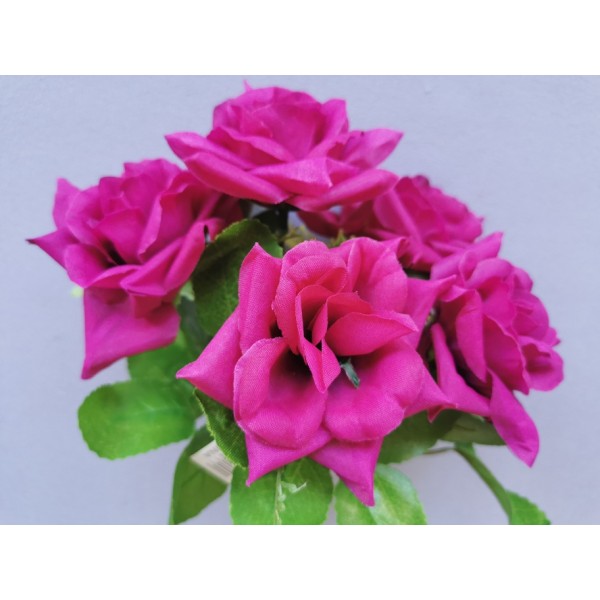 Růže kytička x 5 květů s přízdobou, v. 28 cm; květ 7 cm; posledních pár kusů.