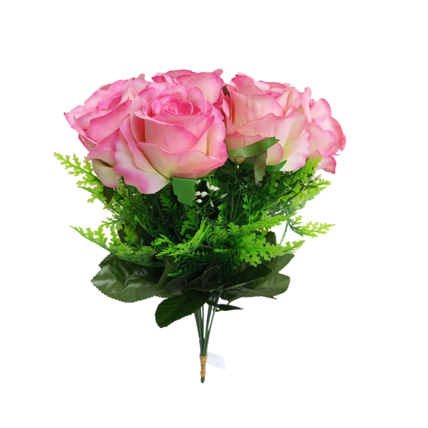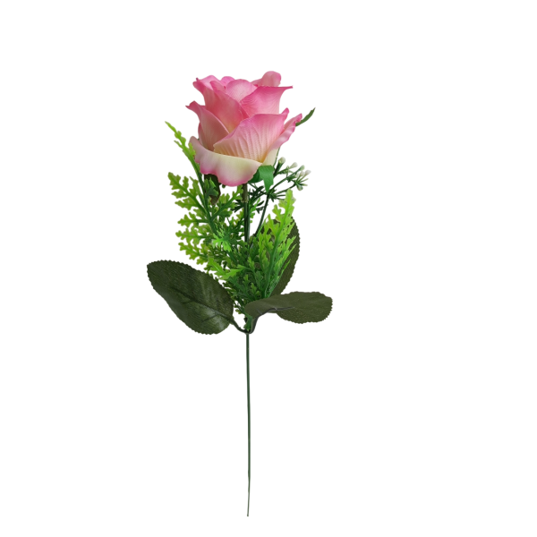 Růže zápich s plastovým asparagusem, v. 30, květ 4x5 cm.