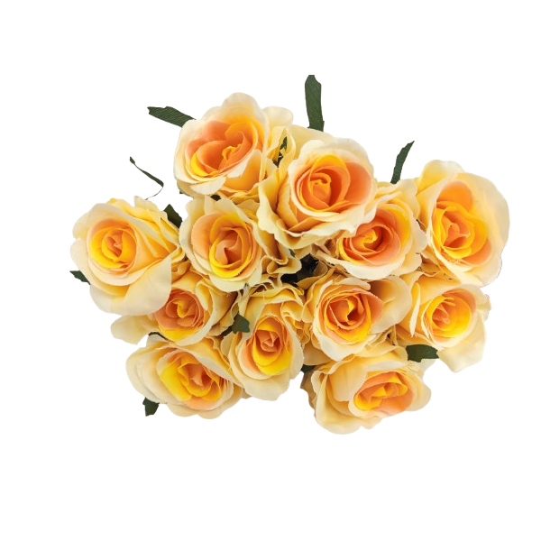 Růže kytice (12ks) žlutá s oranžovým středem 65 cm